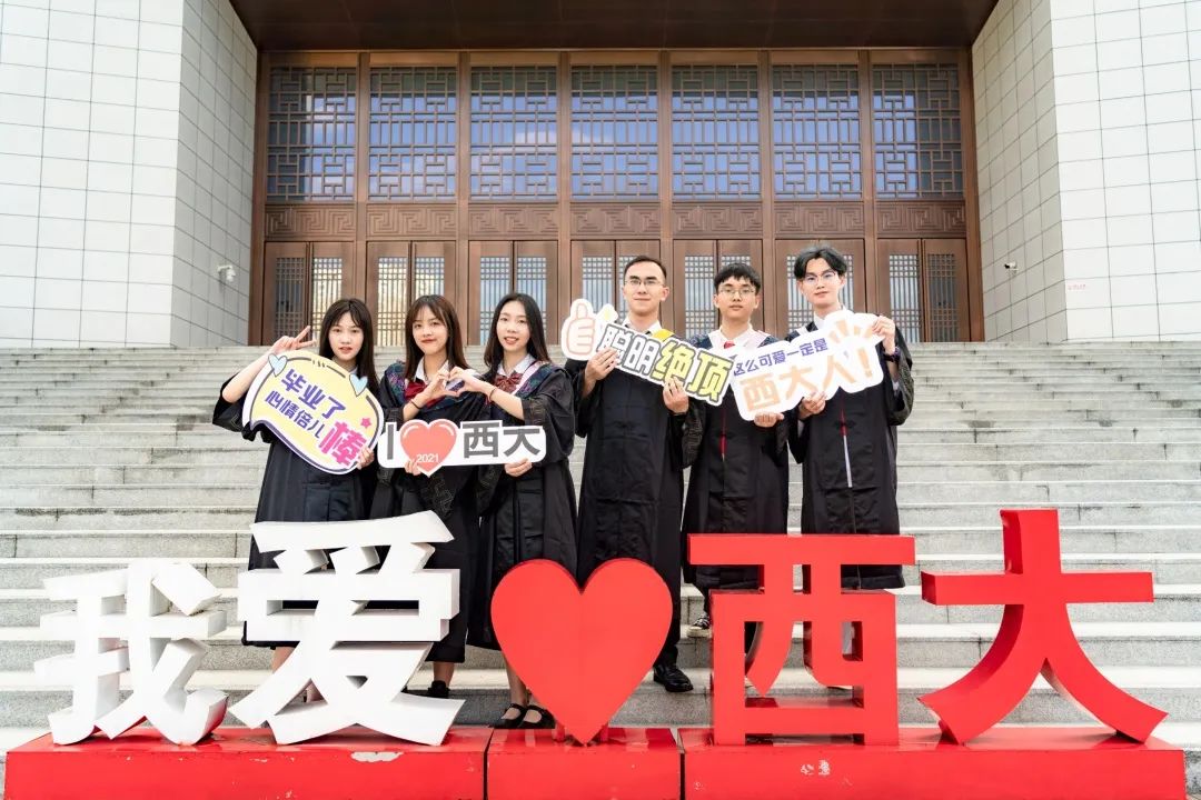 鲜花、气球、自行车、签名墙……在广西师范大学的毕业典礼上一样都没少。学校还为所有2021届毕业生特别定制了印有校长寄语的书签和一枚刻有毕业生名字的专属水晶纪念章。