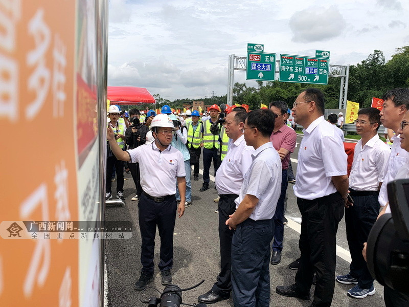 参加通车现场会的领导嘉宾了解项目建设亮点。广西新闻网记者 陶媛 摄