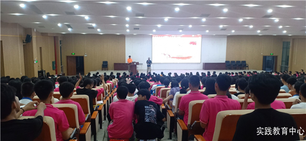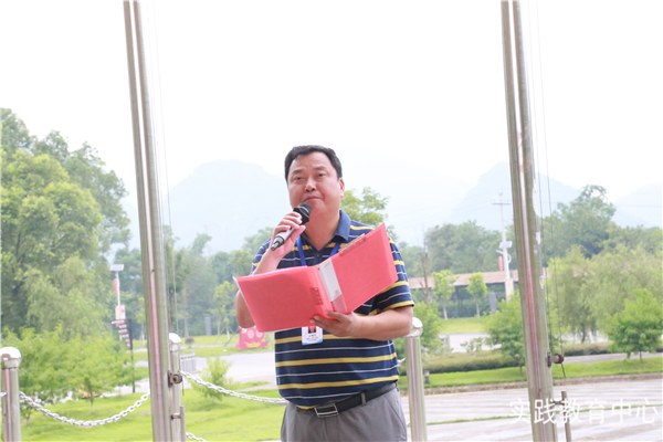 开营仪式上,红旗飘扬,学生们洪亮的歌声带动着大家的情绪。实践教育中心主任、书记、校长刘树亮在开营仪式上向学生们致以深切期盼:“党在召唤,时代在召唤,让我们以崇高的理想、创新的意识、无畏的勇气展现新时代青年的智慧、风采和力量,让我们团结一致、与时俱进、奋勇前行,以忠诚之心跟党走,以为赤子之心为人民,以奉献之心报祖国!”