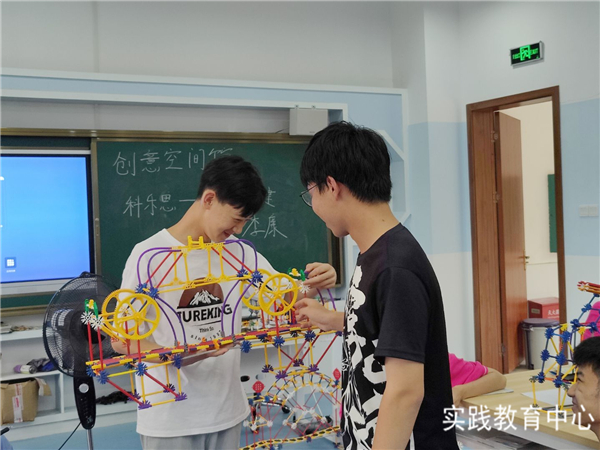 桥梁设计课上,学生们正在搭建共同设计的桥梁,因为同学们一步步的精心设计,才有最后凝聚了整组成员力量的桥梁;风能实验课,同学们体验到了科技的奇妙,学习观测、记录,也为他们今后走上科研道路打下了良好的基础;探梦馆中,同学们了解了宇宙的奥妙、以及无人机的知识原理,无人机模拟技术让学生们身临其境,体验到了驾驶无人机的乐趣。