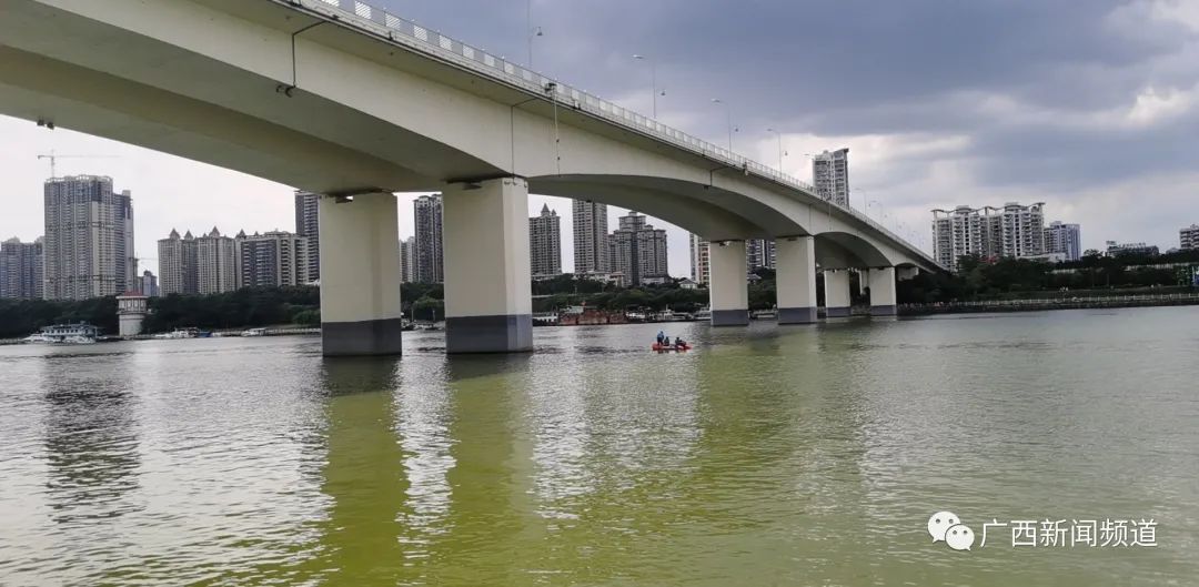 据市民拍摄的视频显示一个女子从南宁市北大桥南跳下然后马上沉入邕江当时在邕江钓鱼的市民目击了女子跳江的过程