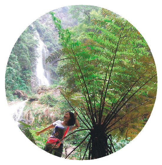 老乡告诉我们,此山中有不少桫椤,当地人称它为“人仔枫”。当地人并不知道它那么稀罕。早些年,常有一些外地药材商到这里收购,村民们把大株的桫椤砍下,剥去外层,取其树心当草药来卖,真让人痛心。近几年来,经政府部门的宣传后,当地群众已逐渐懂得了它们的价值,保护得很好。如今,在德定瀑布周围,特别是在瀑布的沟底生长着成片成片的桫椤。