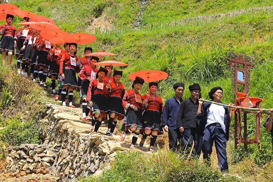 晒衣节当天来自全国各地的4对新人,按红瑶的传统婚礼习俗,举行盛大的集体婚礼,红衣定终身。