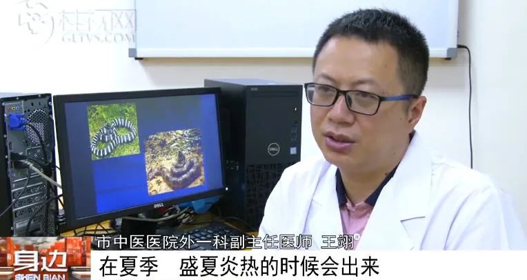 市中医医院外一科副主任医师 王翊表示,在夏季,盛夏炎热的时候会出来,主要的话就是在一些山间、草丛和这个河边,比较多一些。特别是中午,或者是盛夏的时候,或者是傍晚的时候,这个蛇的出没的频率会比较大,在这种时候容易碰见毒蛇。