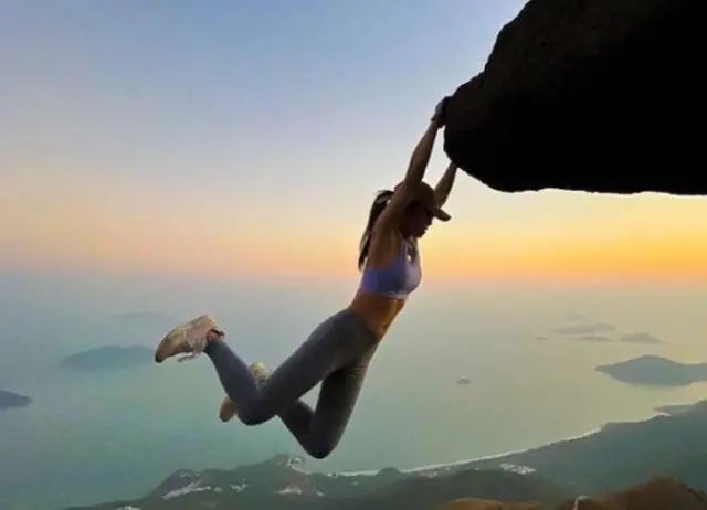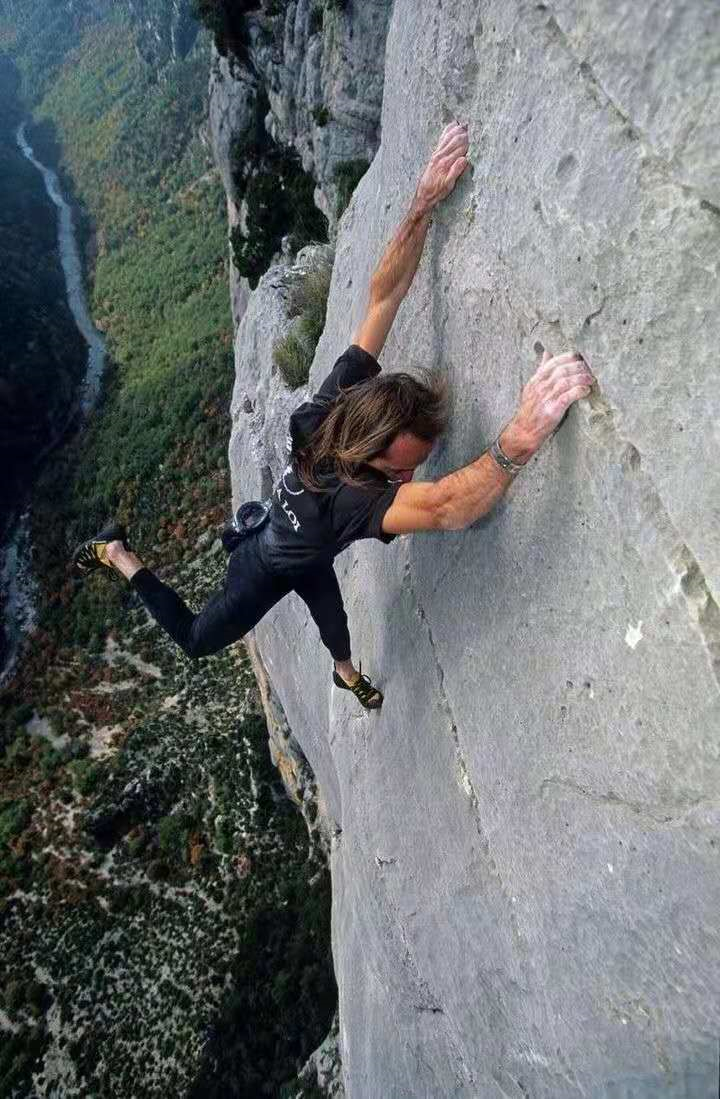 仅凭手指和脚趾发力,使整个人悬挂在悬崖上。