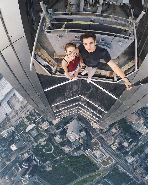 就像安吉拉·尼古拉(Angela Nikolau),她曾站在天津的摩天大楼上表情十分轻松自在地自拍,就像在普通的平地一样。