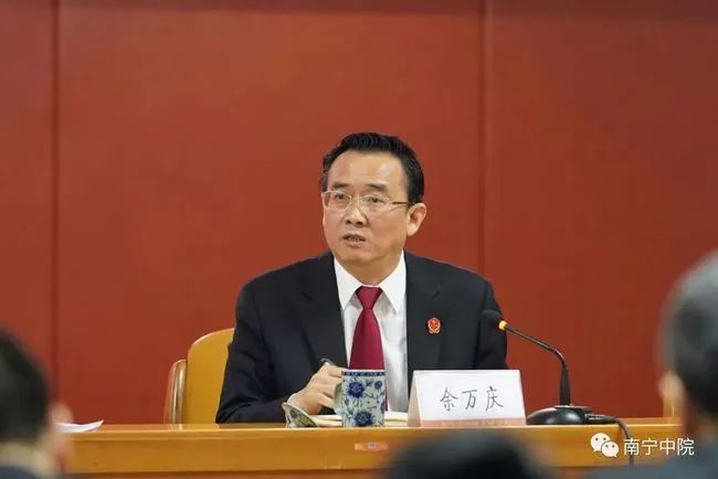 2019年6月,南宁市中级法院召开优化营商环境专题会议,余万庆在会上发言。图:南宁中院