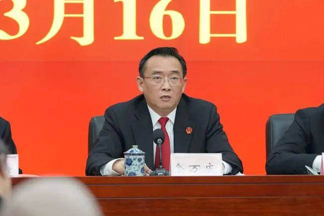 今年3月4日,南宁市中院召开全市法院队伍教育整顿部署会,余万庆主持会议。图:南宁中院