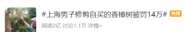 隔壁物业修剪上百颗树木,罚款1万5