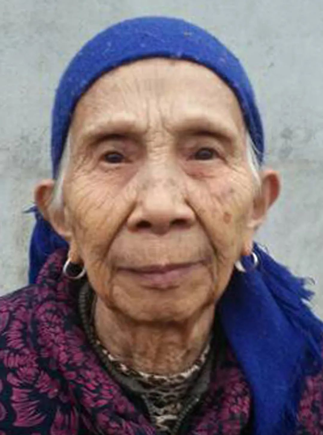 赵良英,女,瑶族,1922年2月出生,广西桂林市兴安县华江瑶族乡水埠村委水埠塘村人。