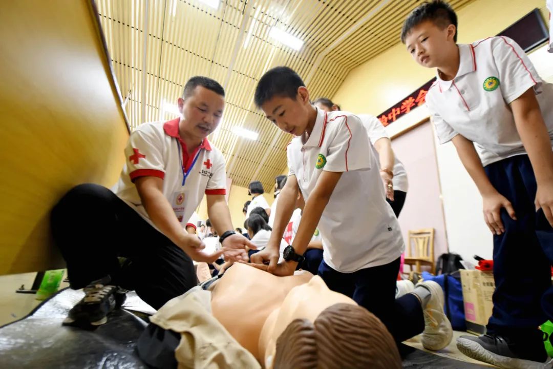 ▲6月17日,龙胜各族自治县红十字会、教育局联合开展“应急救护知识进校园”培训活动,组织志愿者为同学们传授救护知识。潘志祥/摄