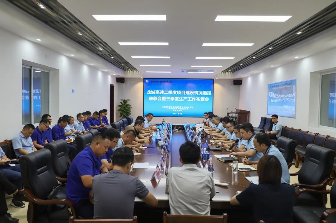7月20日,龙城高速召开二季度项目建设情况通报表彰会暨三季度生产工作布置会。桂通公司总工程师安永昌、路面分公司副总经理刘渊、指挥部、监理单位、施工单位的领导班子及干部职工代表参加会议。