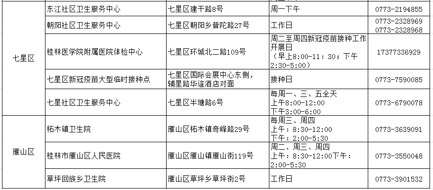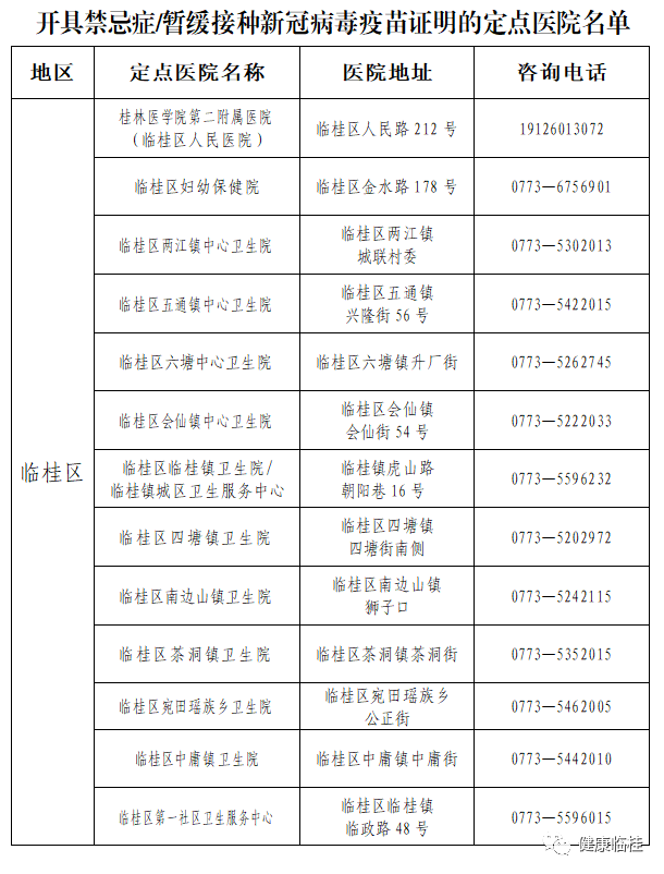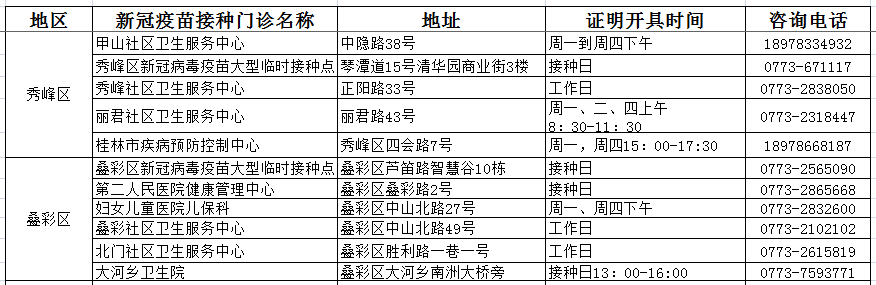 秀峰、叠彩、象山、七星及雁山区范围可开具证明的医疗机构