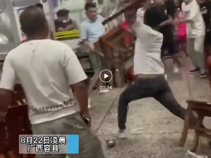 容县一宵夜店内有人因发生口角起冲突双方大打出手、甚至抡起凳子打砸视频热传引发网友关注