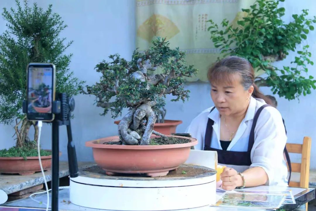 但突如其来的疫情,使盆景行业受到打击。好在电商直播的“爆火”,让陈相如从中看到商机。