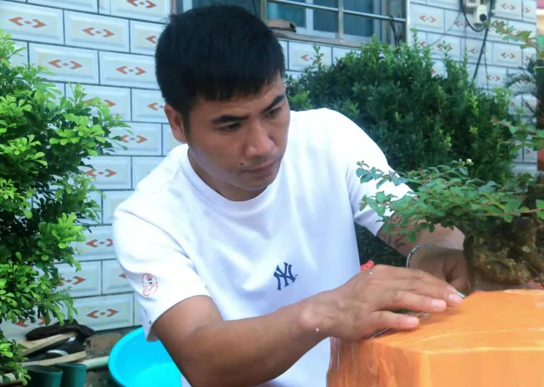 陈相如从1993年开始培育盆景,是侯寨村的第一代盆景人。“培育盆景是我终身的事业,在我们村,几代人养一株盆景的景象随处可见。”陈相如告诉记者,培育盆景就跟酿酒一样,好酒越放越醇,盆景生长的时间越长,也就越能培育出好造型。