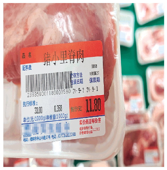 一家超市标示的出售的猪肉价格。