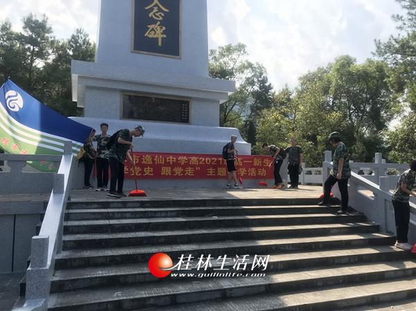 在饶山三烈士碑前,我校开展了桂林市逸仙中学高2021级高一新生“学党史,跟党走”主题研学活动。本次活动由德育处王欣欣主任主持,由学校党委副书记,德育副校长潘中同志为同学们介绍了三烈士的历史光荣事迹。最后结束,王欣欣主任一句“请党放心,强国有我们!逸仙中学,加油!加油!”给同学鼓舞了士气,让更有信心,有力量的面对高中三年的学习生活。