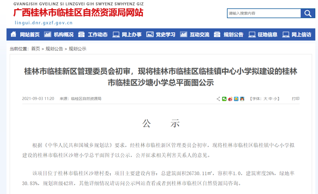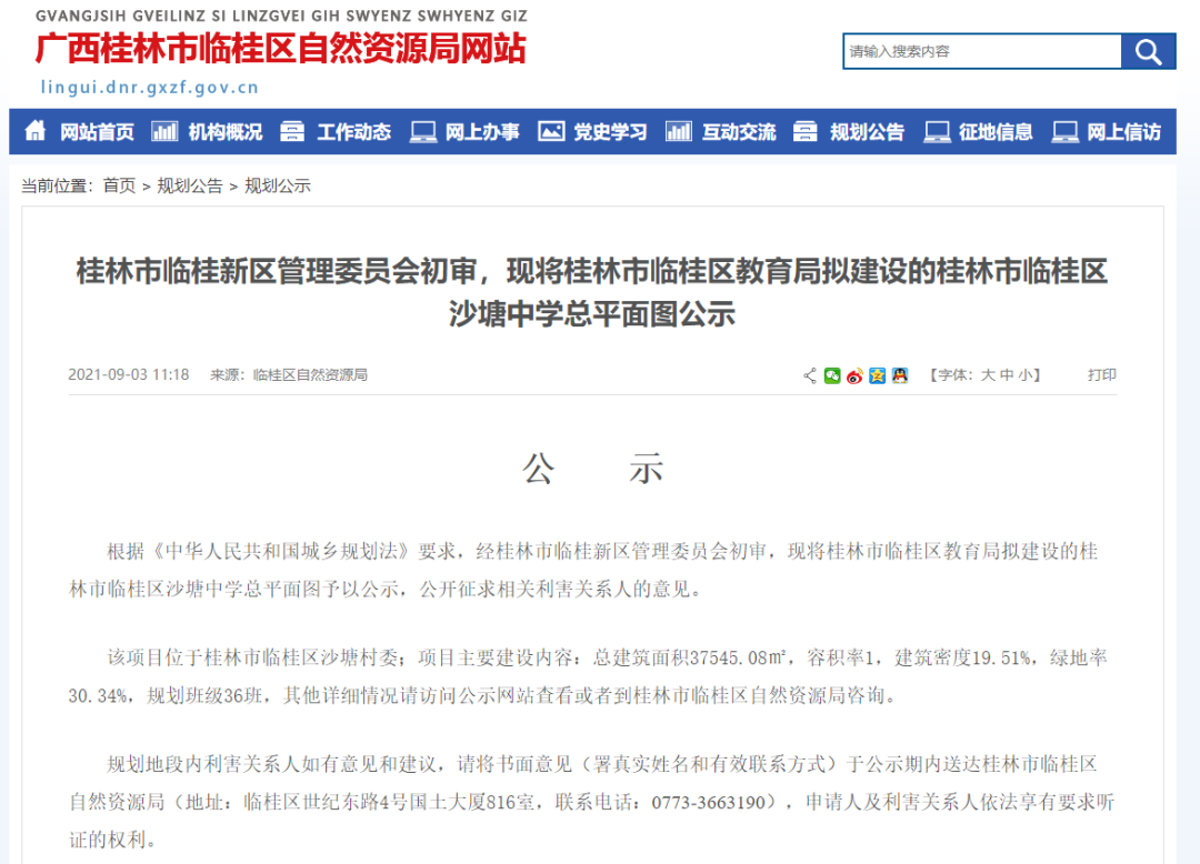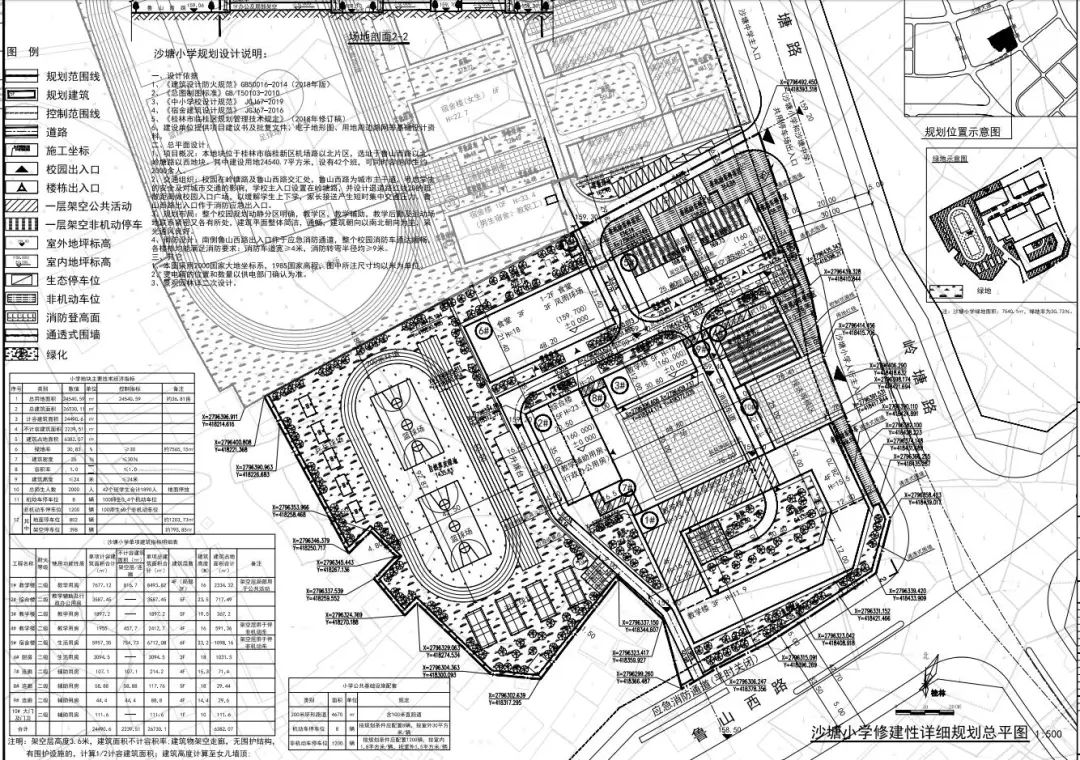 近日,临桂区自然资源局公示了沙塘小学以及沙塘中学的总平面图。