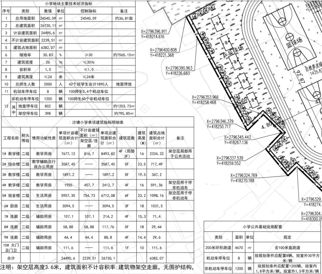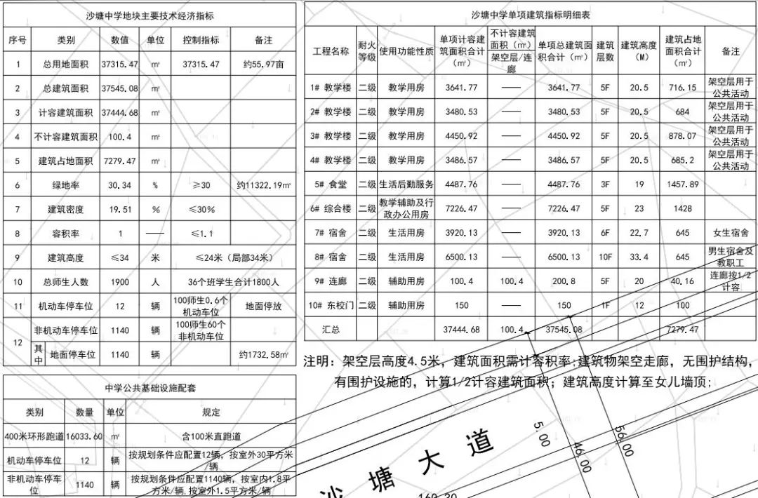 其中,沙塘小学总建筑面积26730.11㎡,规划班级42班;沙塘中学总建筑面积37545.08㎡,规划班级36班。