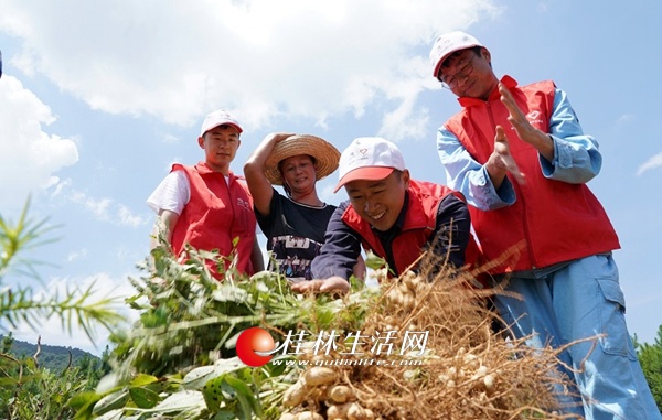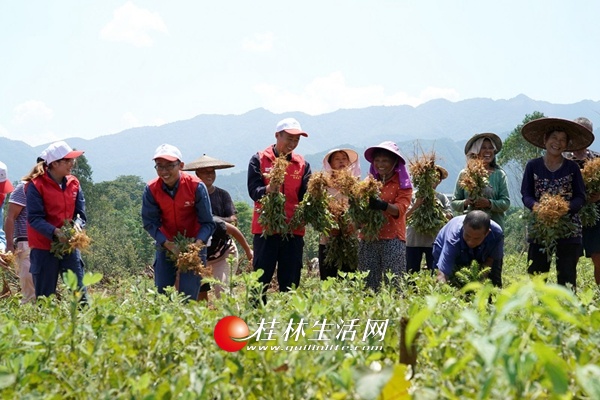 在仁溪村“小籽红皮花生种植基地”,炎炎烈日下,驻村第一书记粟博闻带领南方电网广西桂林供电局八名青年志愿者,与农户们一起拔花生、摘花生,他们个个都忙得汗流狭背。带着泥土的清香、颗粒饱满的花生,从手里脱落进筐,大家心里有如自家花生丰收了一样高兴。