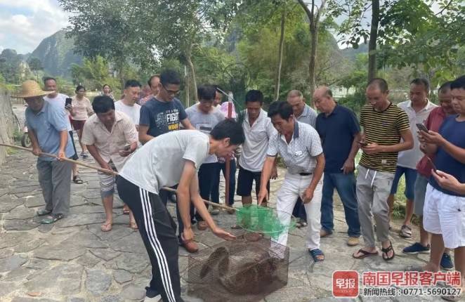 3日早上,靖西市公安局值班民警接到了群众打来的电话,称在旧州景区有一只不知名的野生动物飞入居民阳台,受惊吓后较为凶猛。