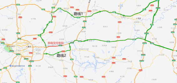 路线2:可从六景收费站出站后走二级路从G80广昆高速横县收费站上高速公路。