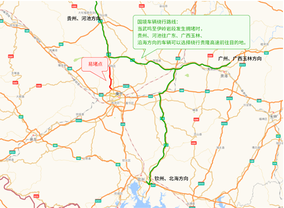 (十四)G75兰海高速武鸣至府城路段发生拥堵时: