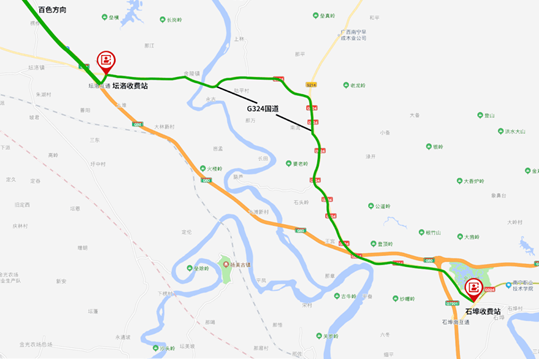 西乡塘区往百色方向的车辆可以选择绕开石埠收费站,经324国道避开拥堵路段。