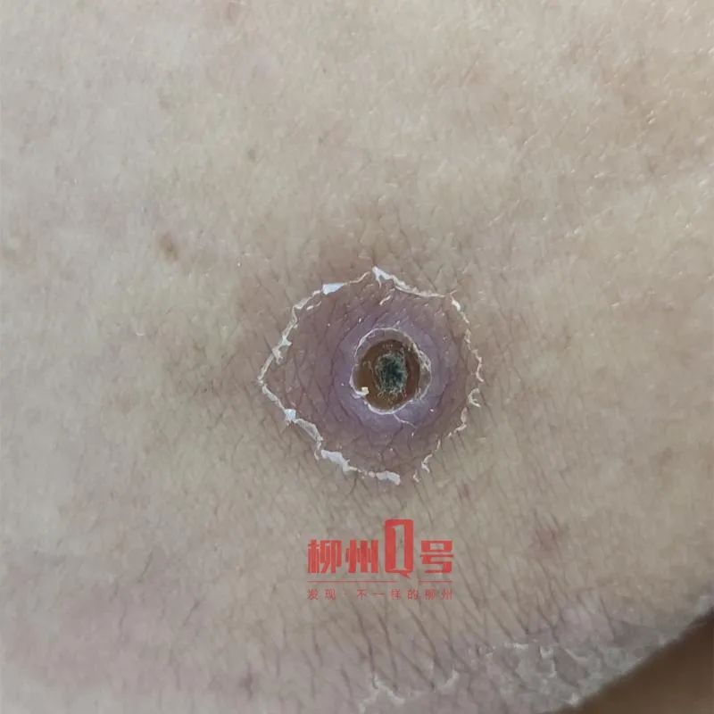 李梦蕾询问得知王先生平时喜欢在河边钓鱼,正是在钓鱼后发现臀部似有皮肤擦伤,她随即对王先生的臀部“擦伤”做了动态观察。不看不知道,李梦蕾发现王先生的皮肤破损处逐渐变成边缘隆起、外围红晕的溃疡,随后中央结成焦痂,一切症状都指向了恙虫病。