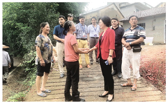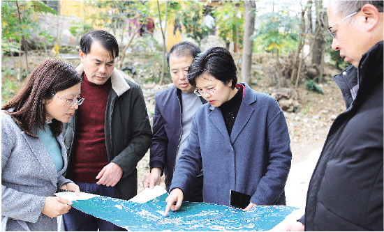朱鹃屏(右二)在龙水镇实地调研指导“桂林市新型城镇化示范乡镇工程”