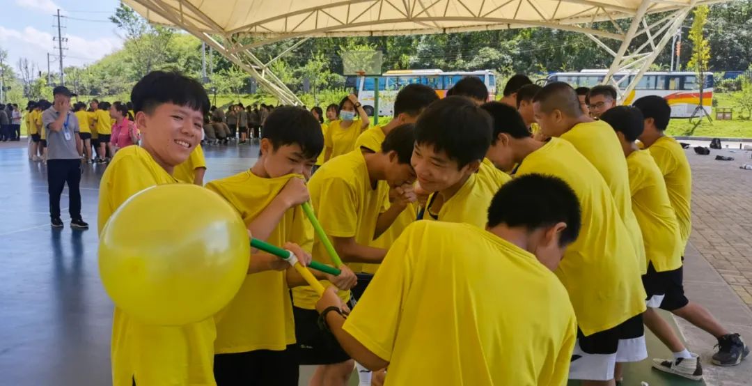 记者在室外张拉膜训练区看到,学生们分成多个小组进行“呼吸的力量”项目活动。“呼吸的力量”是考验团队沟通与协作的项目,每个小组需要用PVC管搭建好呼吸机,每人一个吹气口,一起吹爆气球,速度快的小组获胜。教育中心教学团队的谭雅婷老师告诉记者,该教学项目考验学生组织、沟通和协调的能力与技巧,让学生体会团队力量。