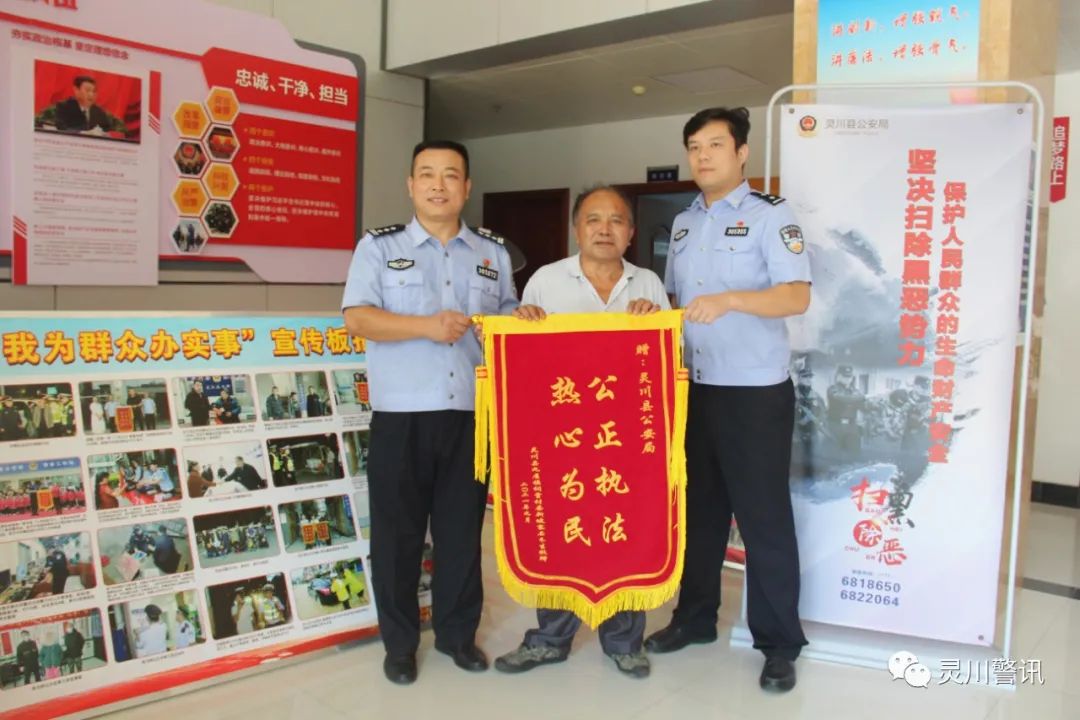 9月26日,受害人石先生到灵川县公安局将一面写有“公正执法、热心为民”送到灵川县公安局,为民警迅速破案点赞,并表示衷心的感谢。