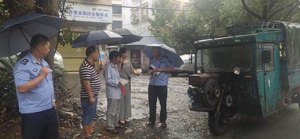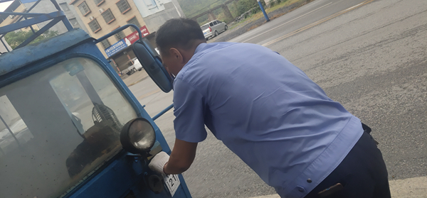 执法严明对农用车安全隐患零容忍。联合执法组一行8人冒雨深入乡村道路进行农机安全隐患排查治理,排查过程中,做到不漏一辆农业车,检查着重查看是否进行年检,有无驾驶证,是否是假牌、套牌,有无拼装改装、违法载人等违法违规行为。对农用车存在的违法违规行为进行登记,对车主进行批评教育,并下达整改告知书限期整改。本次农机安全大检查检查农用拖拉机10台次,纠正违章3起。
