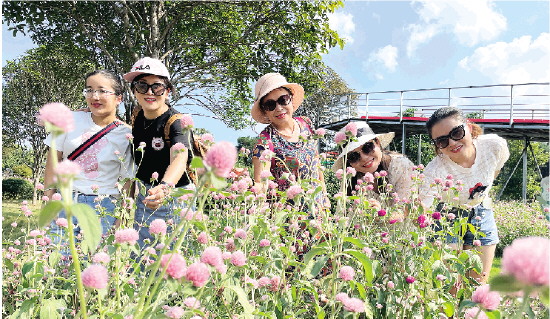今年国庆期间,在永福县罗锦镇岭桥村一处名叫芷欣园的乡村旅游景点内,几亩千日粉盛开,受到游客青睐。图为游客在花田内赏花。记者刘健 摄