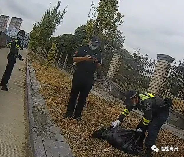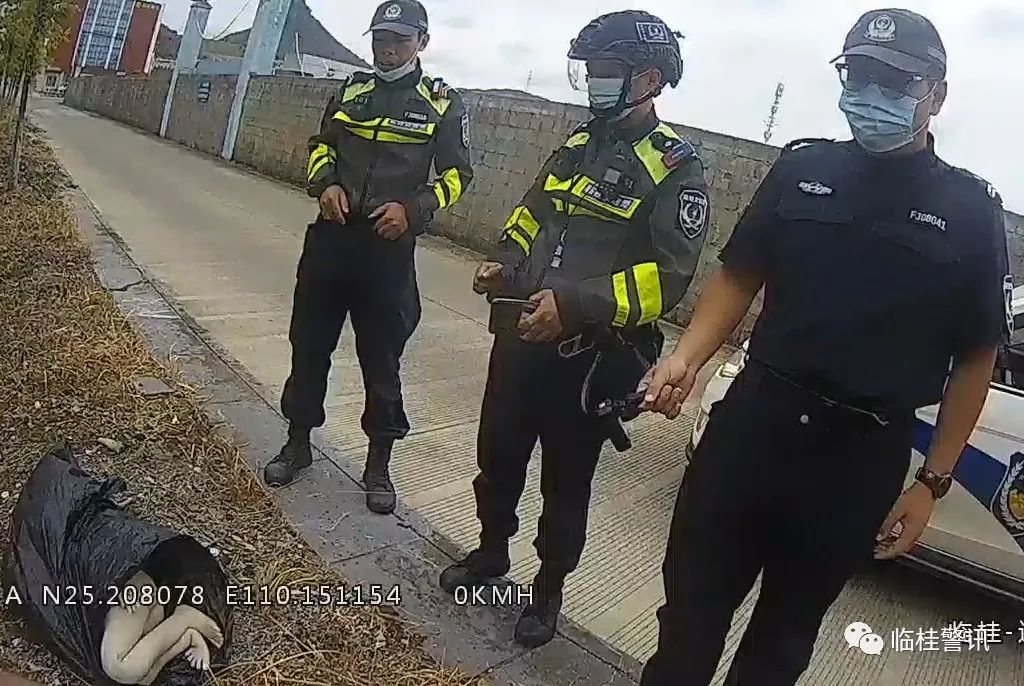 10月9日中午,桂林市公安局临桂分局指挥中心接到一宗群众报警。报警群众称,自己在临桂某条偏僻的小路上,发现了一个黑色塑料袋。他看到塑料袋中有“一个小孩的尸体”,“用个小黑袋子包着”,小孩的腿已经露出来了!