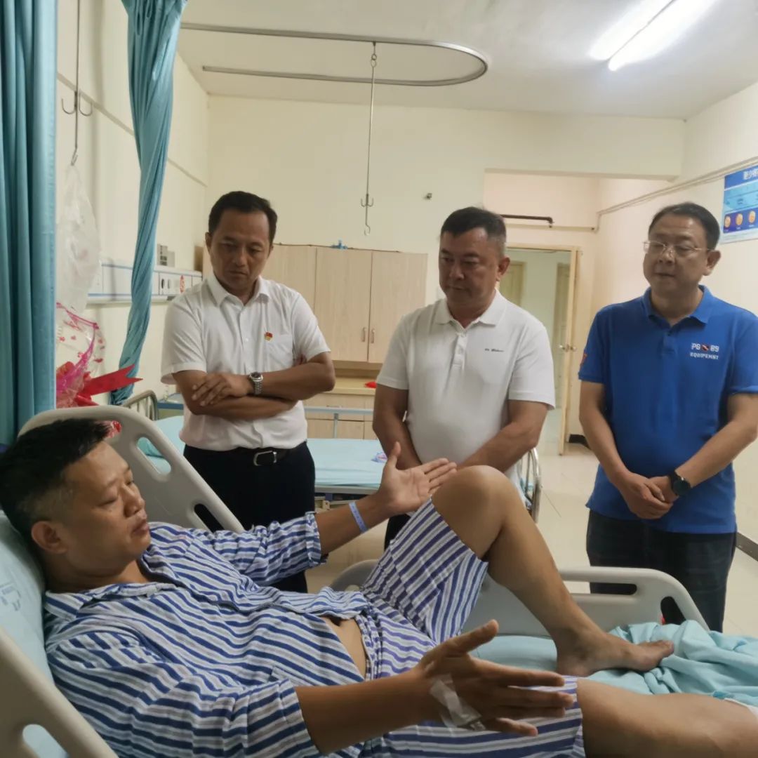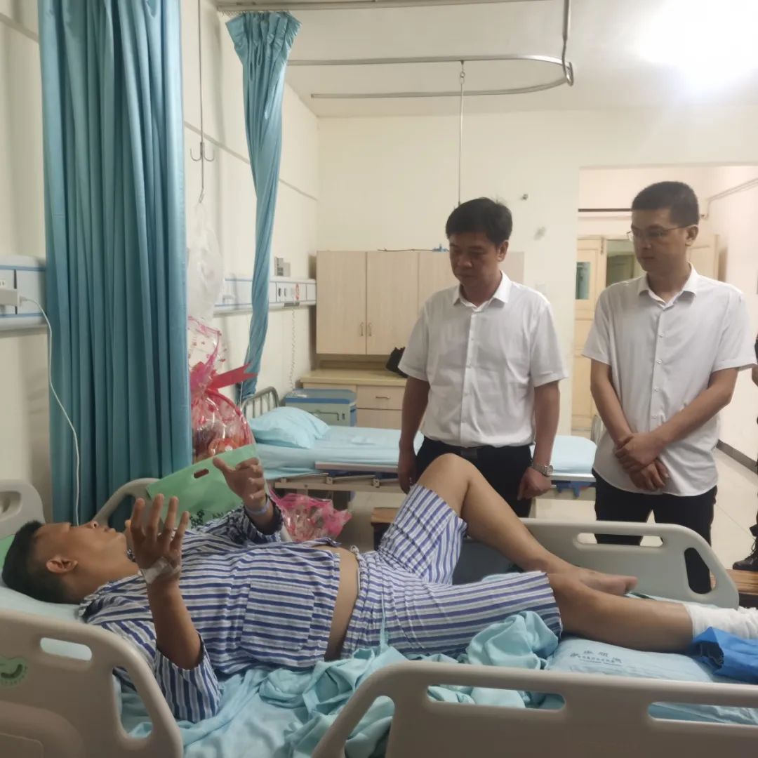 ▲市公安局和阳朔县领导到医院看望慰问在抓捕犯罪嫌疑人过程中英勇负伤的民警黄国胜,转达了副市长、市公安局党委书记、局长罗贤瑞与阳朔县领导的关心问候。经治疗,目前,黄国胜伤情稳定。