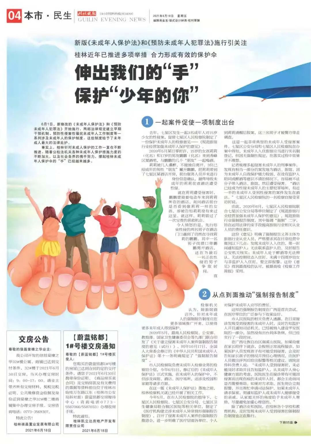 七星分局与区检察院、卫健局、医院联合创建侵害未成年人案件强制报告制度和医疗机构建立涉未成年人异常情形强制报告制度的工作机制,严格落实公安部“五必须”要求,强化场所管理,预防和减少侵害未成年案件的发生,为辖区未成年人营造清朗的成长环境,倾情守护辖区未成年人健康成长。