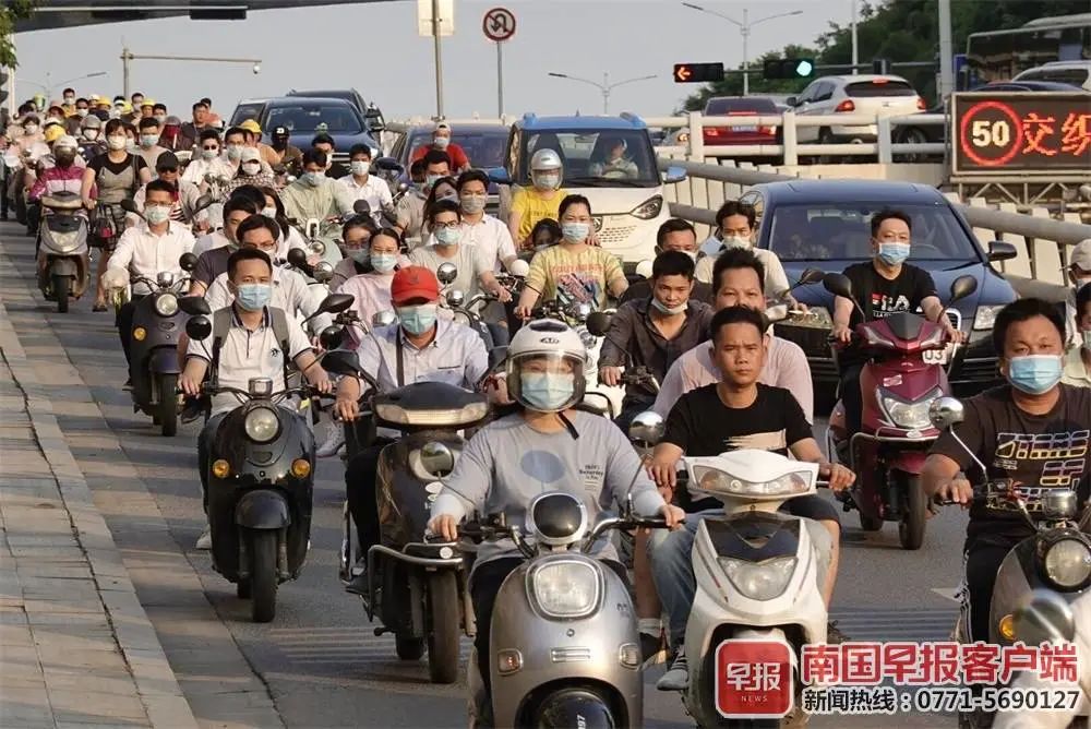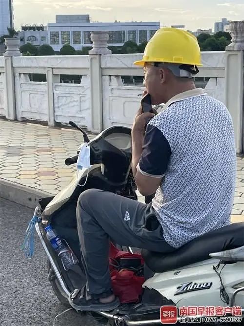 ▲南宁街头,一位男士在电动车上吸烟。