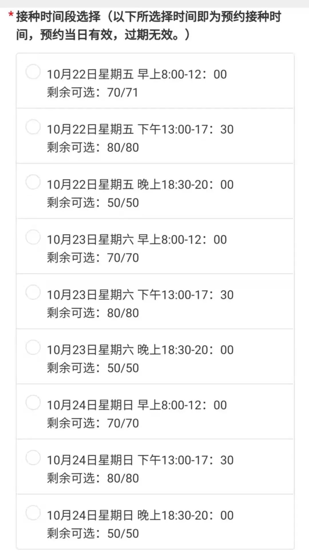 接种时间:10月22日 8:00--20:00 10月23日 8:00--20:00
