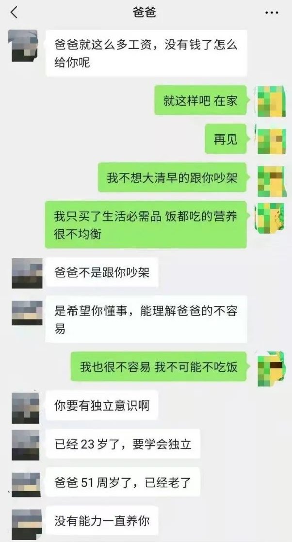 近日,一则“留学生因生活费不足辱骂父亲”的话题引起广泛讨论。父女二人因为一万元的生活费产生争执,女儿在聊天群内发布了辱骂父亲的内容,并被人将此聊天记录发布在了社交平台。