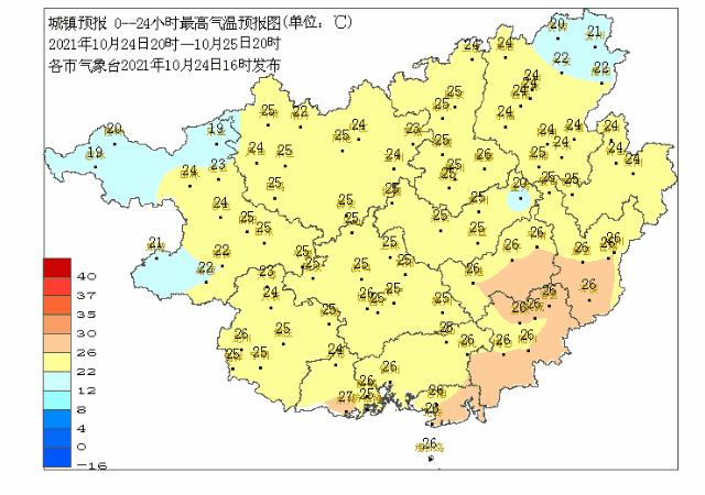 最低气温:未来三天桂北大部在11~17℃之间;桂南大部在15~20℃之间。