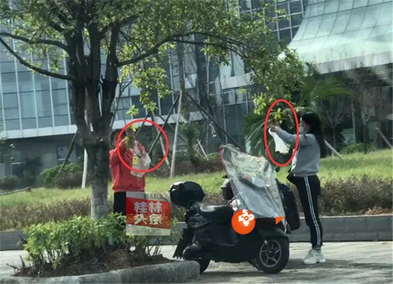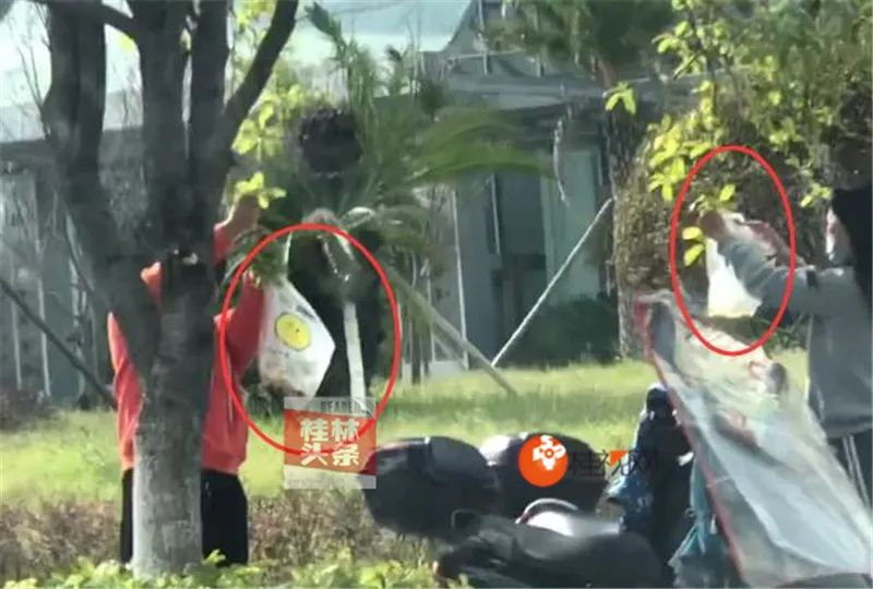 从视频画面中我们可以看到,两名女子手里拿着塑料袋,“捣鼓”着桂花树叶,袋子里确实已经装了不少桂花。