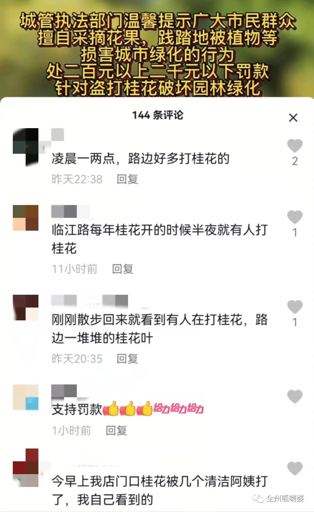 3、最最重要的是,采摘桂花的行为是违反了《城市绿化条例》,是会被处以200元至2000元的罚款。而且!你在街头摘桂花的行为真的很丑!