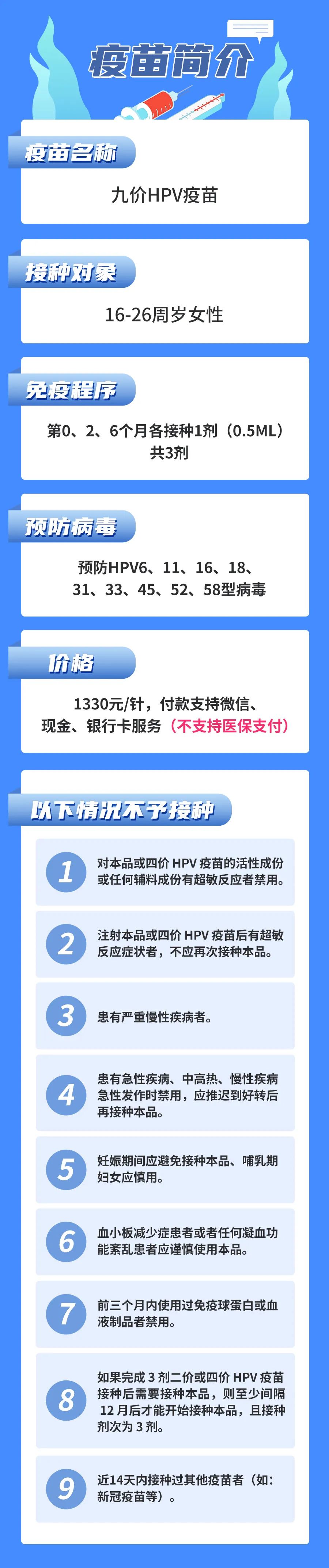 1.本次九价HPV疫苗接种全部实行网络预约,不接受电话和现场预约。为防止黄牛抢号,仅限接种者本人实名账号预约,不可代约;