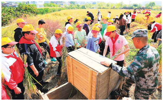 秋收时节,该校组织六年级的孩子们来到平安镇巨塘村的稻田里开展研学实践活动。老师和当地村民给孩子们讲述水稻的生长过程,教孩子们割禾、打谷子,体验丰收背后的辛勤。据了解,该活动将一直持续到本月底。