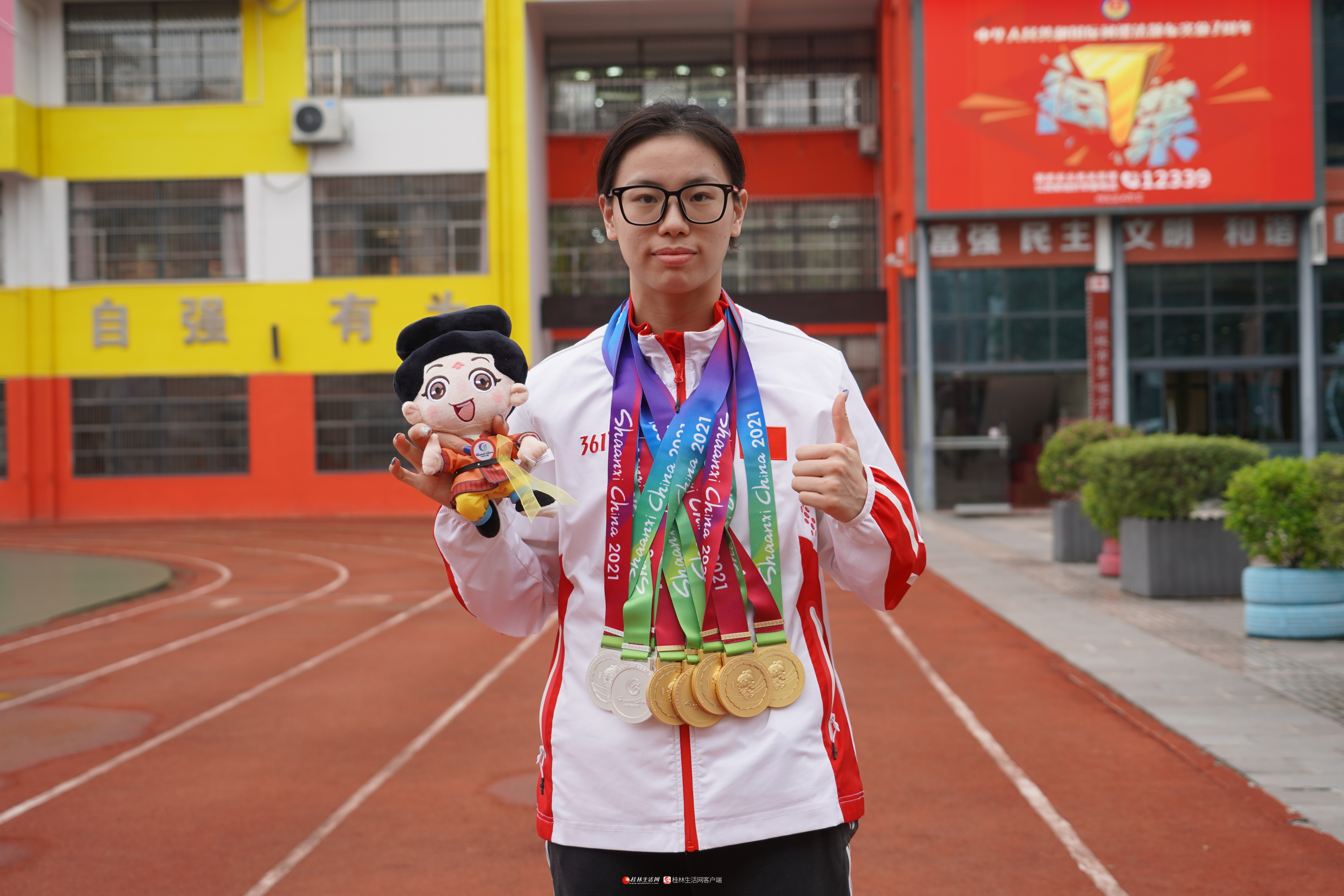 她精进不休,带着沉甸甸的五金三银荣归故里申莹自参赛来获得了许多奖牌,它们承载了无数荣誉,一个个熠熠生辉,无比耀眼