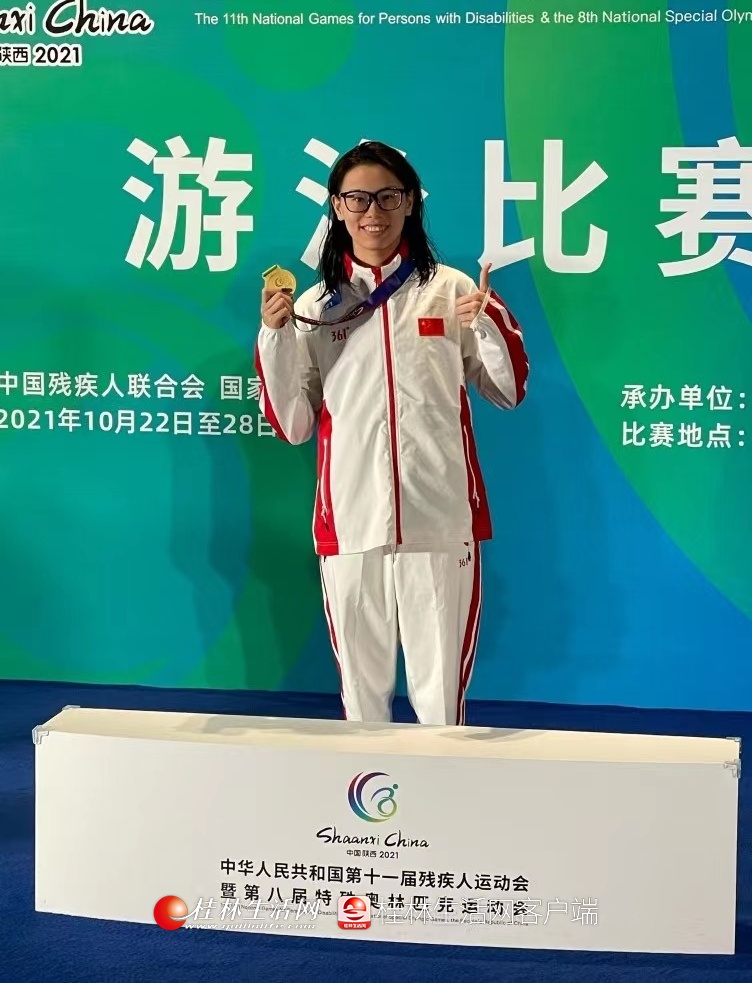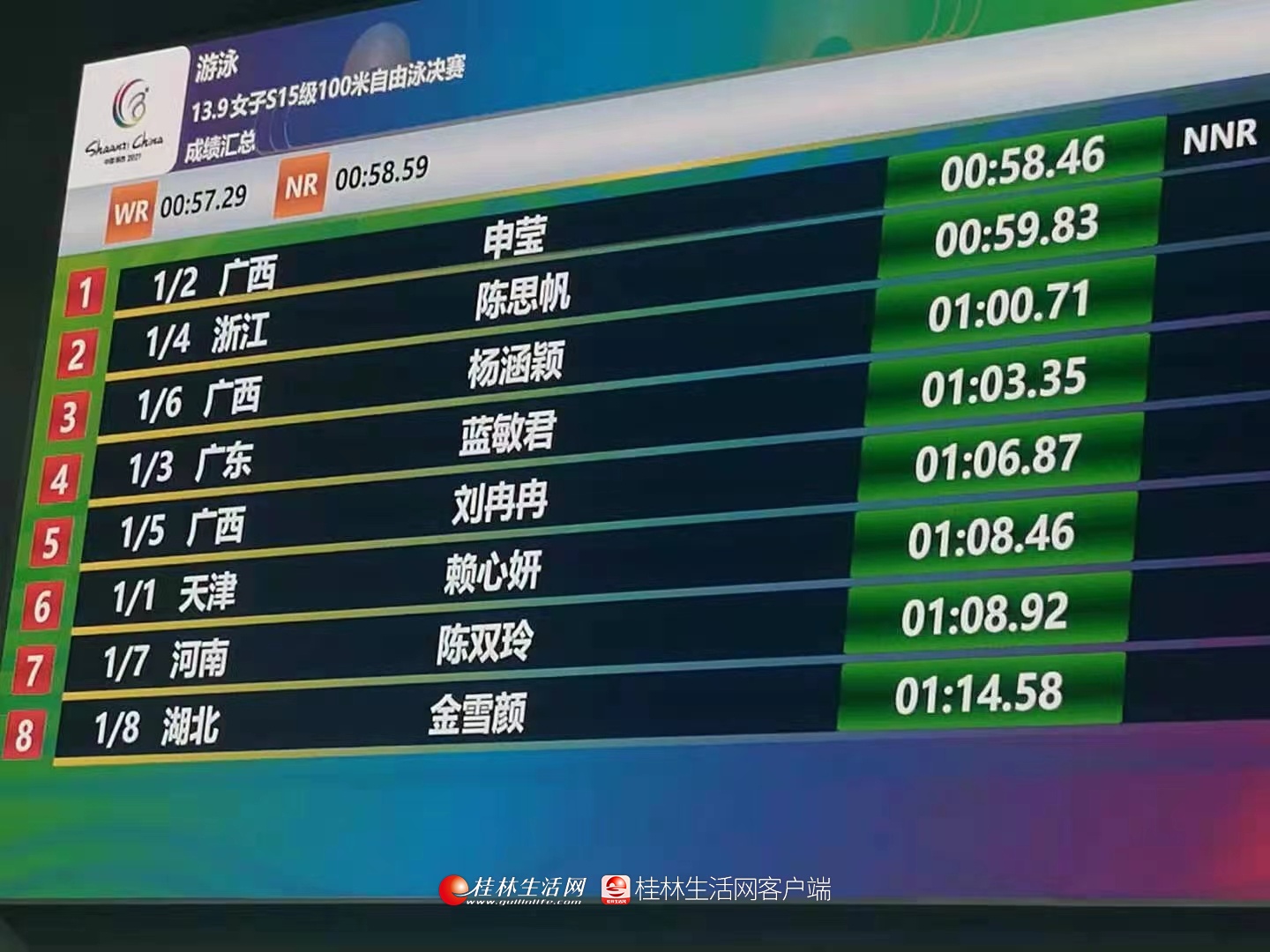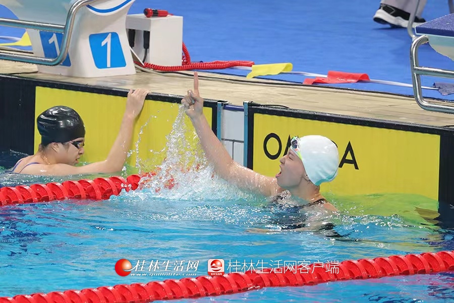 其中,一位桂林女生在S15级100米自由泳中大放异彩
