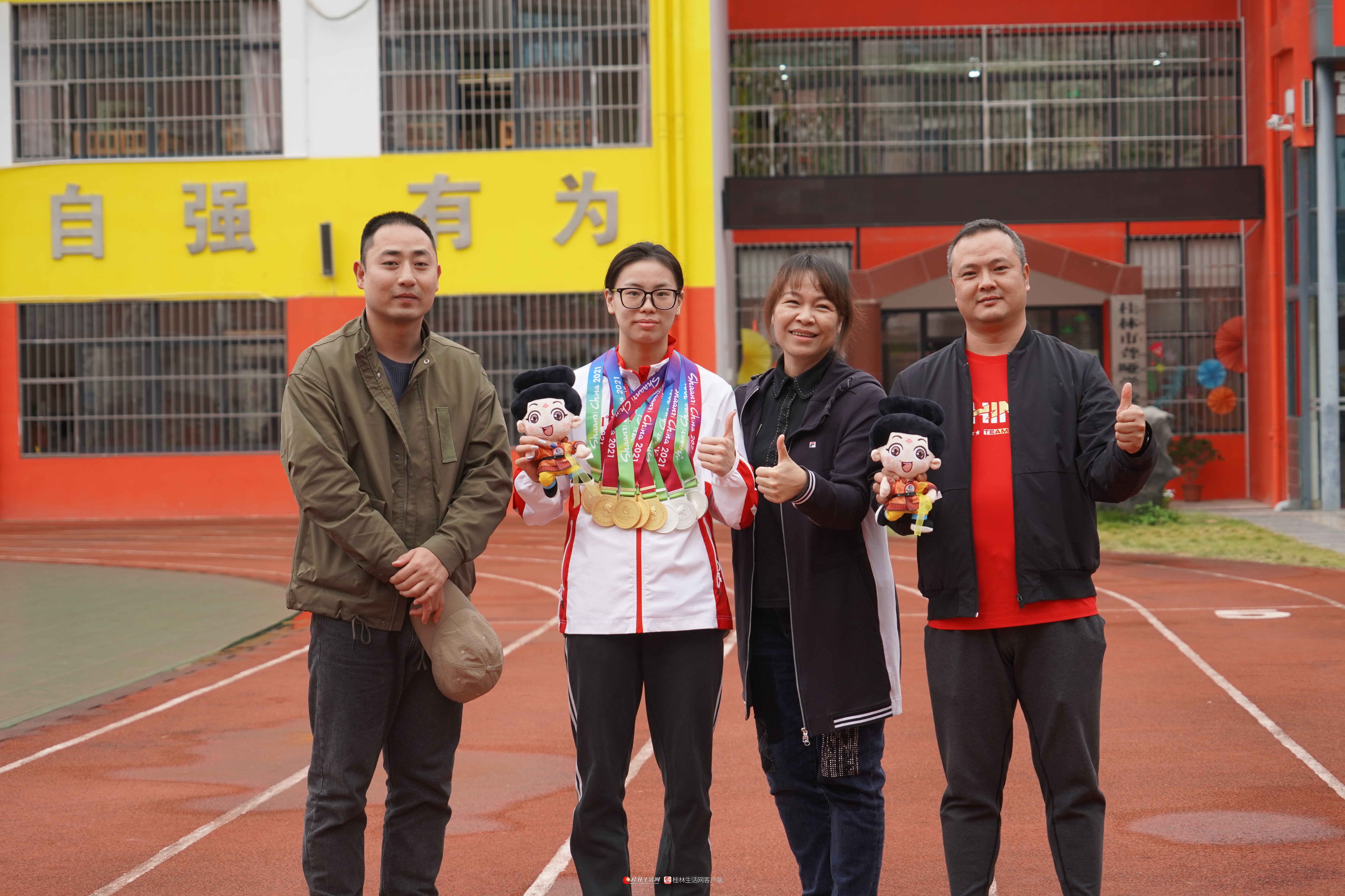 她就是00后游泳小将——申莹比完赛带着奖牌光荣返桂,探望母校的申莹