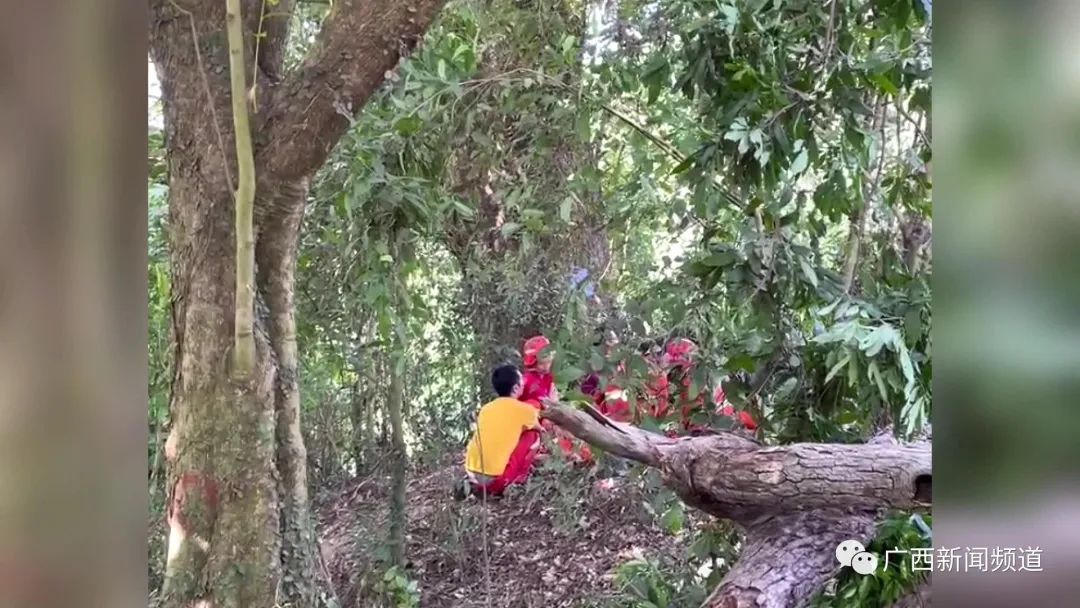 10月25日,南宁市兴宁区应急救援综合大队接到群众报警称:有人在五塘镇四平村坛宴坡一棵古树上烧马蜂窝,引燃了树体。这棵古樟树约20多米高,树龄达380年,是自治区二级保护古树。接到报警后,兴宁区应急救援综合大队当即派出森林消防力量进行灭火。让人没想到的是,第二天,树干内部的暗火又逐渐复燃起来,兴宁区应急救援综合大队又再次派出了16名森林消防队员前去处置。在接通了几十米长的引水带后,抱着水枪冲在最前面去灭火的,是蒙可和他的师傅周达个。然而,灭火行动刚进行了两三分钟,意外发生了。